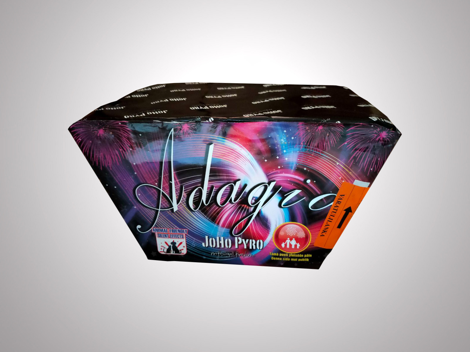Adadgio är en fyrverkeritårta med effekter som har låg ljudnivå. Adagio betyder: musik i långsamt tempo. Det är en tystare variant som gör att du kan ha ett riktigt färgsprakande fyrverkeri med mindre ljud, som exempelvis kan lämpa sig bättre om du ska fira nyår i närheten av ett bostadsområde eller för den som har djur.