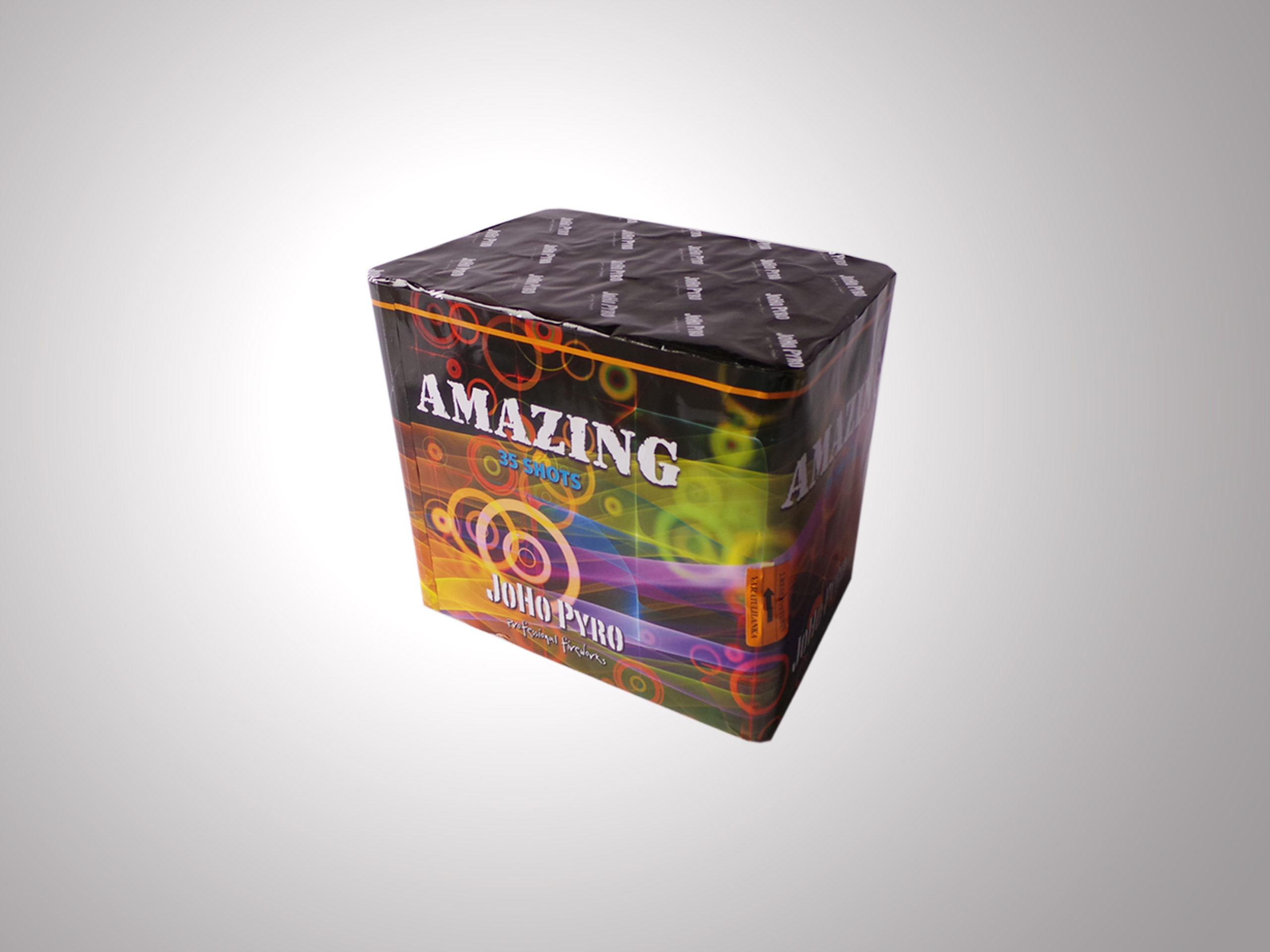 Ett batteri med standard rörstorlek och 5 set av effekter. Ett större rör betyder att effekteran brinner längre. Början innehåller röda dalior med mycket silver, fortsätter med stora brokadkronor, sedan gröna och citrongula & purpur pärlor med guld och blå pärlor, knastrande effekter före en final med röda & gröna dalior och silver blommor.